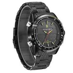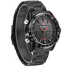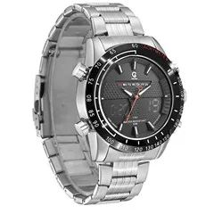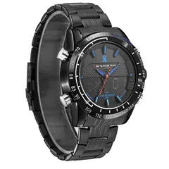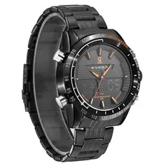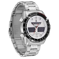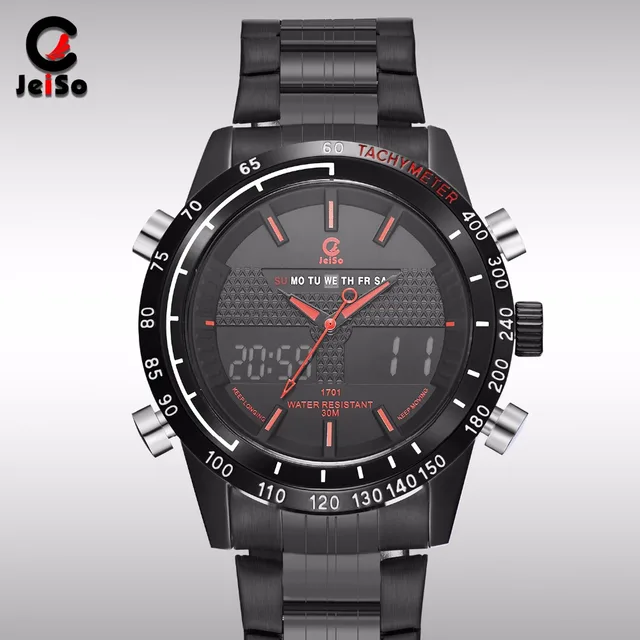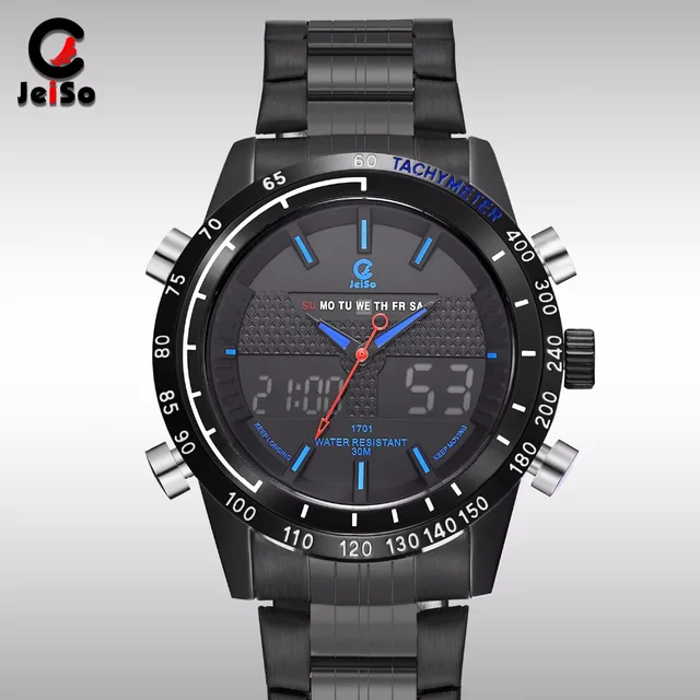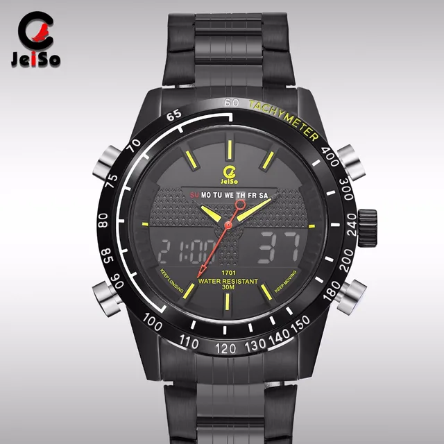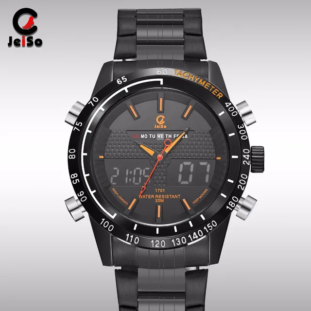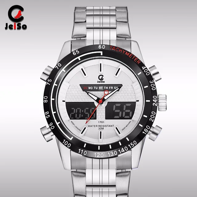 | [해외] JeiSo 스포츠 시계 스테인레스 스틸 밴드 30 메터 방수 듀얼 디스플레이 알람 디지털 석영 손목 남자 |