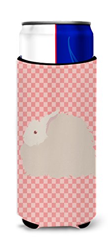Caroline's Treasures BB7959MUK Fluffy Angora Rabbit Pink Check Decorative Hugger, Slim Can, Multicolor