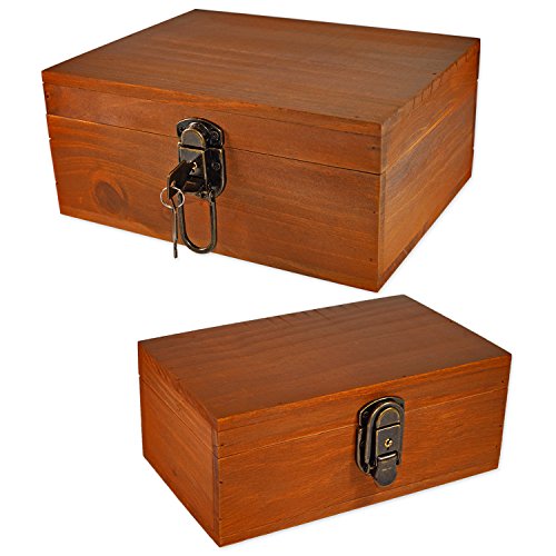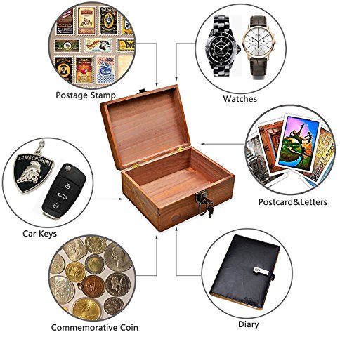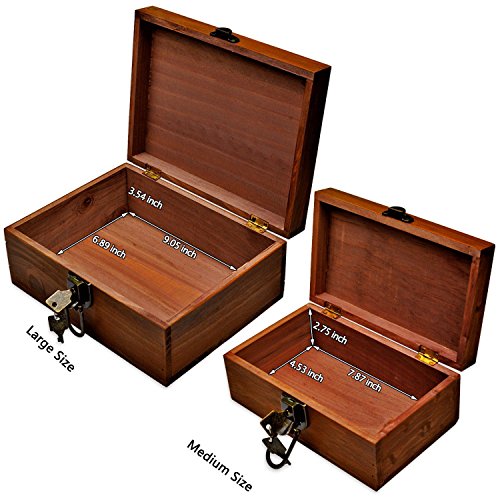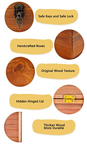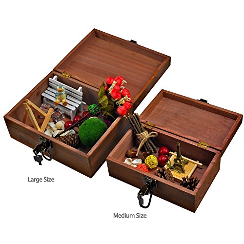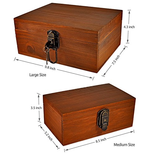 - ❤ 5.Family Pack with Lock : Vanity American country rustic style,Two wooden Storage Box in each pack: 1 large size:{Length 9.8 * Width 7.5 * Height 4.3 in} + 1 medium size:{Length 8.5 * Width 5.2 * Height 3.5 in}; Each Wooden Box has a built-in lock, with 2 universal keys in each box,to storage your personal collections in safe and tidy way;
