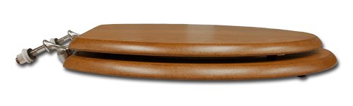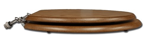 -. Title : Comfort Seats Decorative Oak Wood Elongated Toilet Seat with Brushed Nickel Hinges