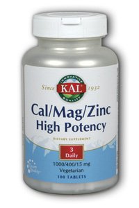 Product DescriptionKal presents calcium/magnesium/zinc high potency vitamin contains 1000 mg of calcium, 400 mg of magnesium, and 15 mg of zinc.0