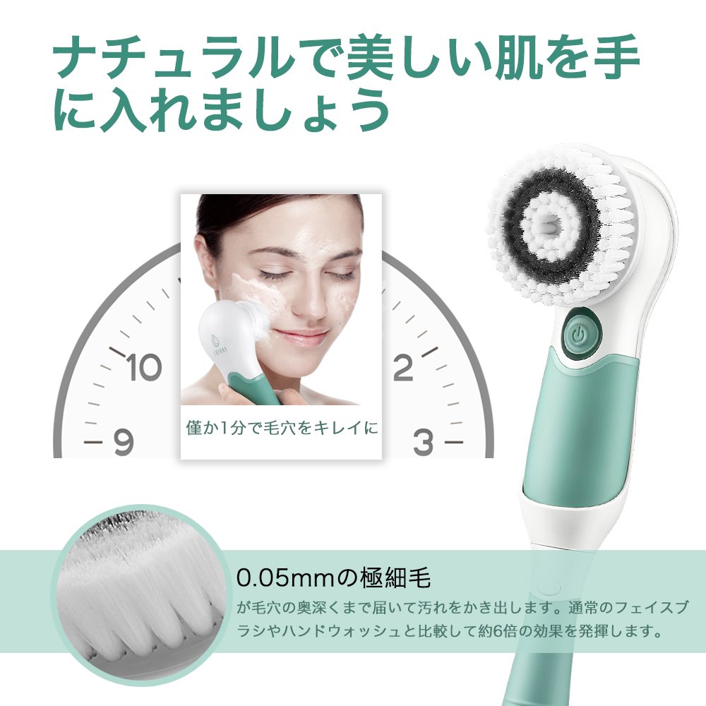Six different brush heads corresponding to each cleansing location are included, and you can perform face and body whole body care.