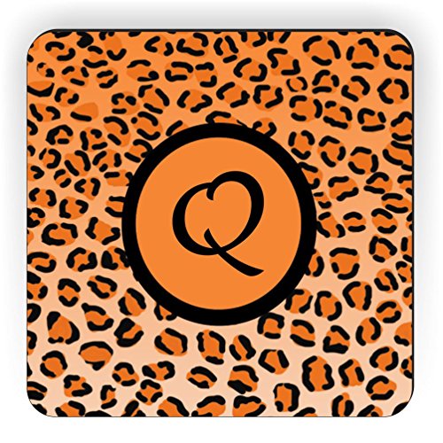 Rikki Knight Letter "Q" Initial Orange Leopard Print Monogrammed Design Square Fridge Magnet