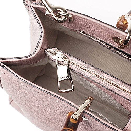 Gucci Bamboo Shopper Mauve Powder Pink Leather Tote Handbag 323660 - Measurements: 15 length x 8 width x 6 heigh inches, double bamboo handles with 4 inch drop. Double hidden magnet closure, detachable and adjustable leather shoulder strap, protective metal feet. Interior zip aand smart phone pockets, interior zip compartment and snap pocket. Color sold out at Gucci. New Gucci handbag with authenticity cards, controllato cards, and Gucci dust-bag. Made in Italy.Feature