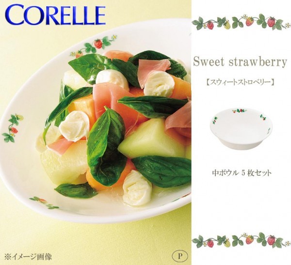 イチゴ柄がかわいい中ボウルです。 製造国:アメリカ 素材・材質:全面積層強化ガラス 商品サイズ:約外径160×高さ50mm(1枚あたり) 重量:180g(1枚あたり) 仕様:食器洗い乾燥機対応電子レンジ、オーブン対応 セット内容:中ボウル×5枚 ※サプライヤー直送品 ご注文後3~4営業日後の出荷となります【商品名】CP-9310 コレール スウィートストロベリー 中ボウル J418-SWT 5枚セット