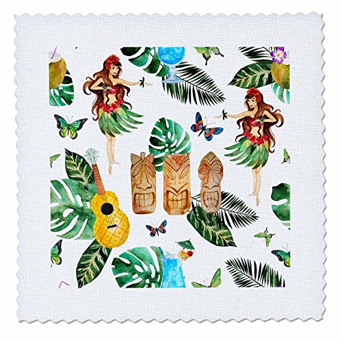 3dRose Hula Dancers Leaves, Tropical Drinks Pattern Quilt Square, 25 x 25"