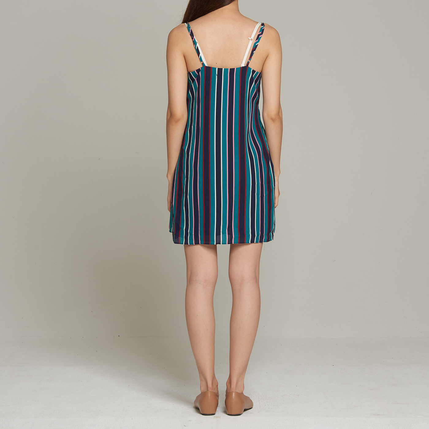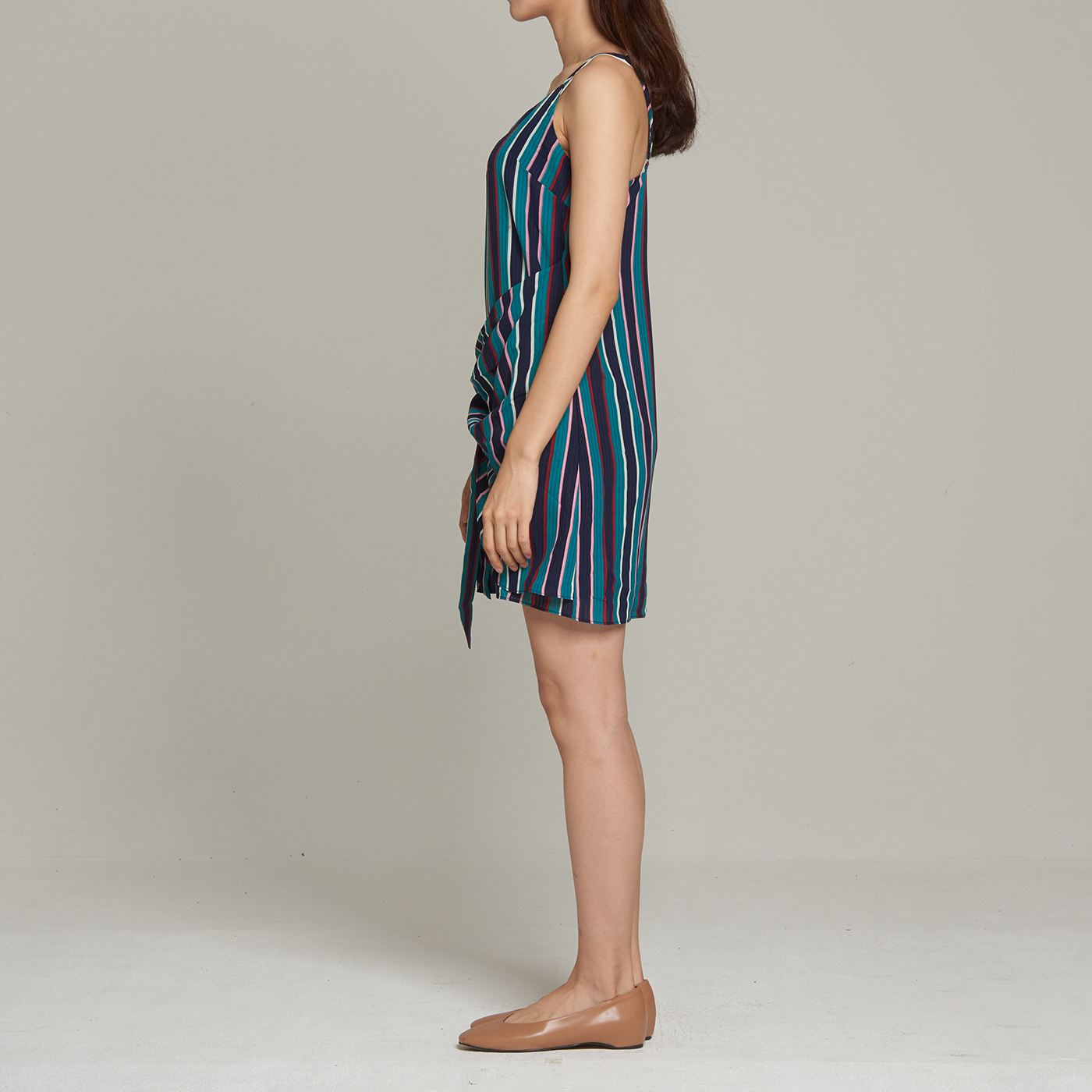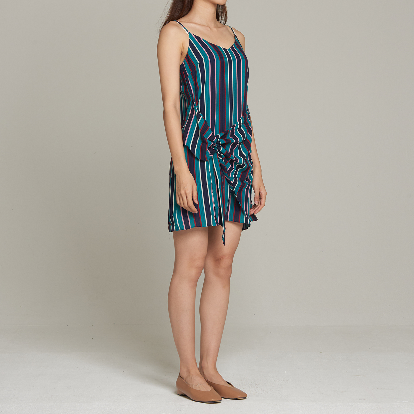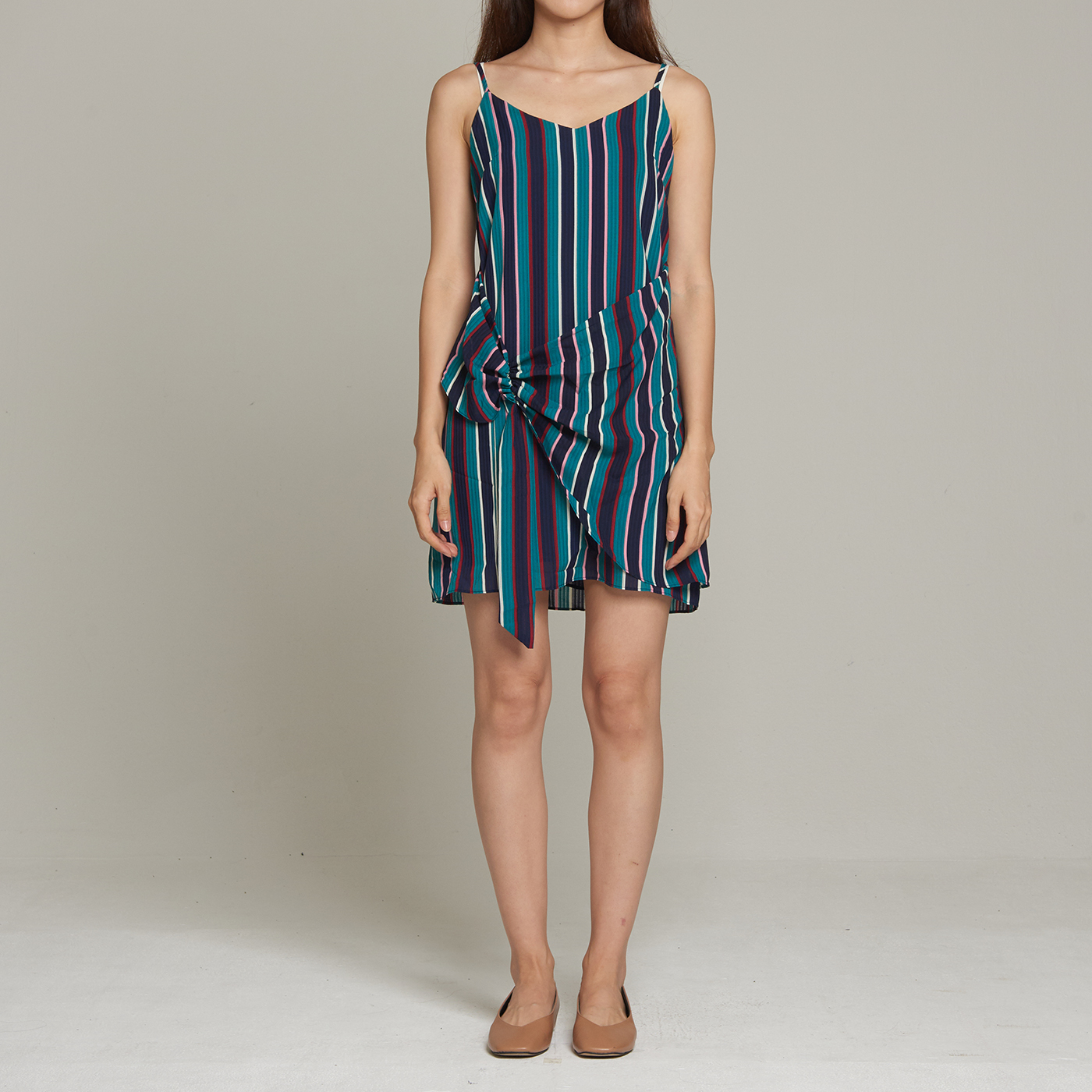 산뜻한 스트라이프 디자인과 리본 디테일이 멋진 스타일입니다.