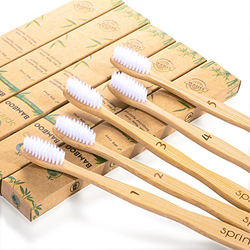 Studio : Spring Publisher : Spring Binding : Misc. Product Description 100% Organic, Biodegradable and Vegan Bamboo ---If you are concerned about the environment and want to contribute more, then this bamboo toothbrush is just what you need. This brush is made with BPA free nylon bristles For Sensitive Gums. You`ll always remain healthy. A Pack Of 5 Toothbrushes. It comes with individual number enable easily tell every brush apart. Bamboo is stronger and harder than wood, and also more durable and healthier than any plastic. No need to dry the handle after use, just rinse your toothbrush and put back into its holder. We love this toothbrush, and we're sure you will. Choose us for the perfect bamboo toothbrush you have been looking for. 0