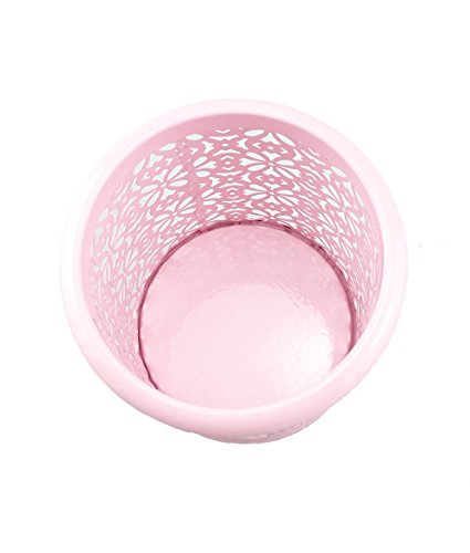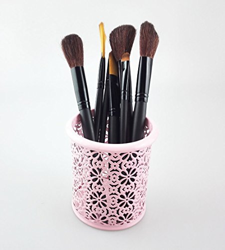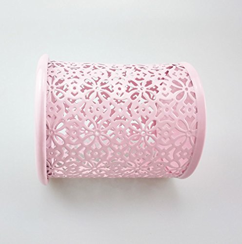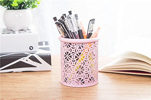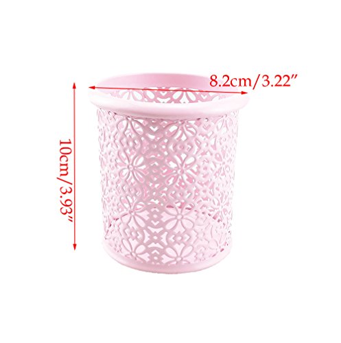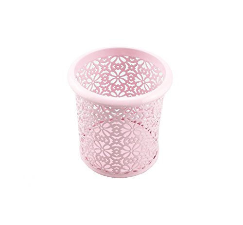yueton Hollow Flower Pattern Metal Pen Pencil Makeup Brush Holder Desk Container Organizer (Pink)