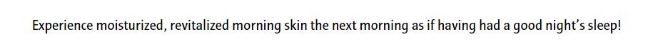 Moisturize and revitalize skin as if having had a good night’s sleep with special intensive care during sleep.