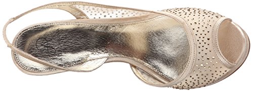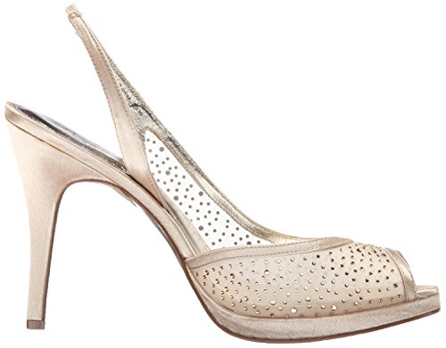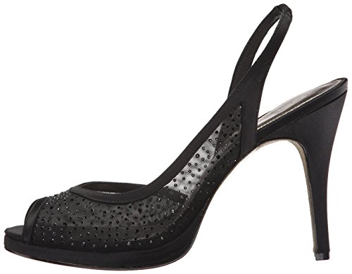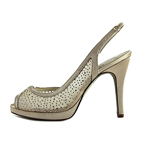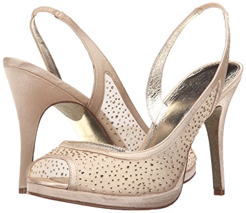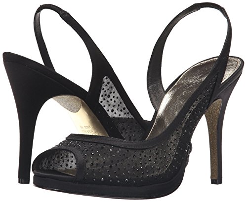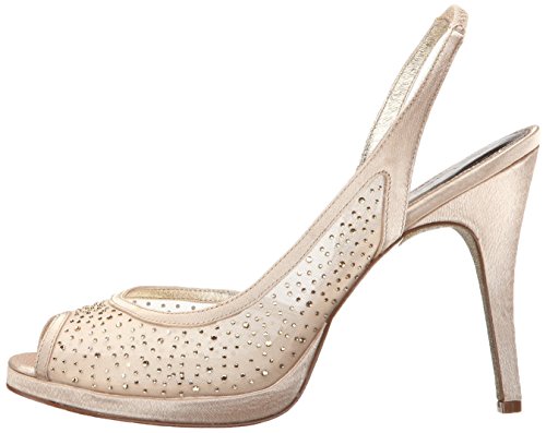 Product DescriptionAiry mesh styles this dressy platform slingback sandal detailed in rhinestones. Metallic leather sock lining for added comfort. 4 inch0