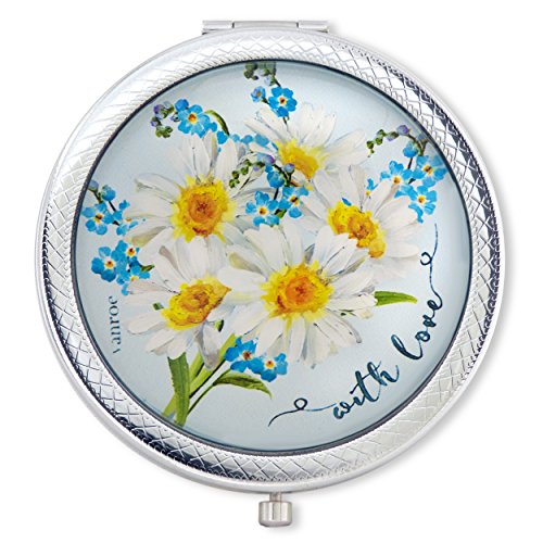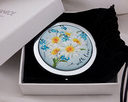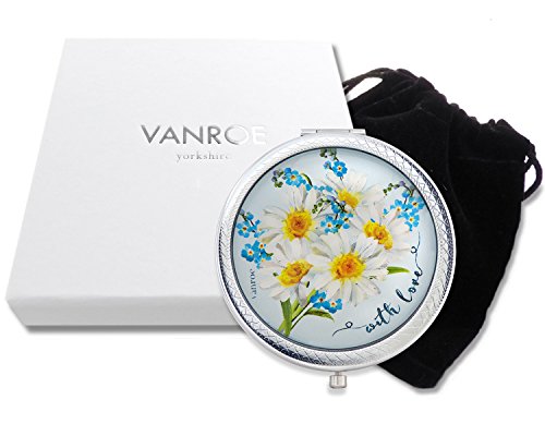 Vanroe 'Daisy with Love' Designer Compact Mirror in Gift Box - Magnified, Engravable, Luxury anniversary & birthday present