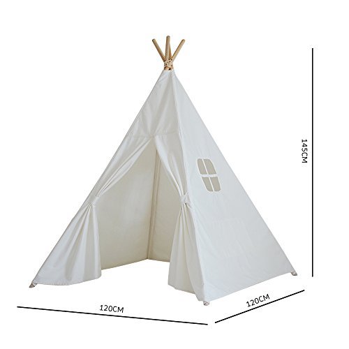 Our heavy-duty cotton canvas material both flame retardant and mildew resistant, quite breathable, comfortable when touch. Wooden poles are sanded smooth, Environmental ! The window design lets in extra light, allow parents to look in and kids to look out. Pure white design inspire a child's imaginations and creativity, it's better to DIY all kinds of patterns to decorate this teepee, create a world of their own. We promise your kids will love Their Own Private Room. So Definitely, This adorable Teepee is a good gift for Boys and Girls, works Great for Their Sleepover Parties, or a Play House for luxury Playroom Decor.. Add a little excitement to your child's bedroom! ! Moms will love it because it store easily. Color:White Style: four poles and one window Material: 100% cotton canvas and pine wood pole in 2 parts and can be assembled Space structure: One bedroom Poles Materiel: wooden Tent structure: Single-layer Size: 120x120x145cm Weight: 3.2kg Kindly reminder: Normally, in the summer, this tent is fit for outdoor, and in the winter, this tent is fit for indoor, in the spring and autumn, this tent is fit for indoor and outdoor, thanks Attention: We only sell the tent. The mat and decorations are just for the need of taking photos and need be bought additionally. 0