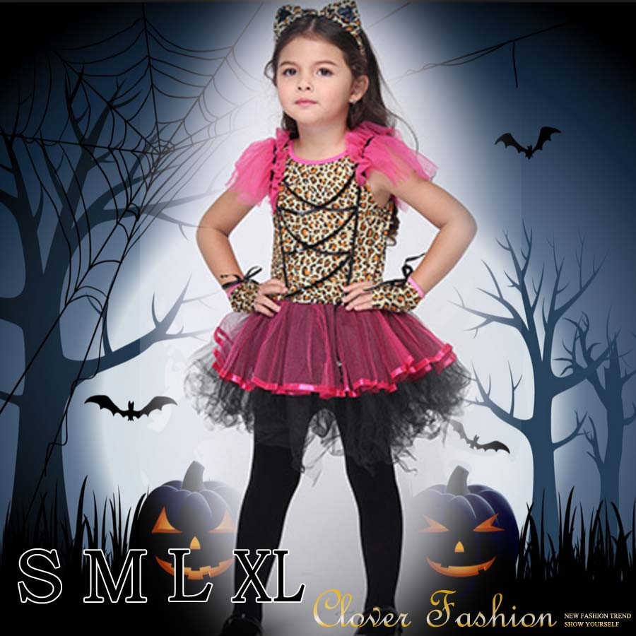 送料無料 2016新作 ハロウィン こども 女の子 ねこ 猫 ネコ耳 豹 女の子 ハロウィン衣装 カチューシャ 猫女 ヒョウ柄 子供用 ハロウィーン 着ぐるみ猫女 アニマル ネコ キッズ コスプレ コスチューム ハロウィン 衣装 子供 仮装 万聖節 激安 3点セット ダンス衣装 舞台