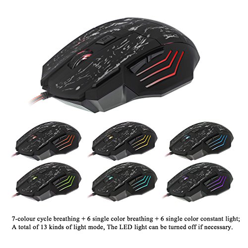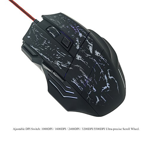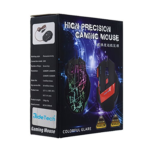 -. Title : JideTech 5500 DPI Wired USB Gaming Mouse with 7 Button 7 Colors LED Optical Professional Gamer Mice for Laptops Desktops Computer