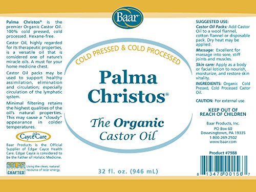 - WE SPECIALIZE IN ORGANIC CASTOR OIL. We exclusively control the manufacturing and formulation of Palma Christos® Organic Castor Oil. Check out our Castor Oil packs. We offer a 100% money-back guarantee!