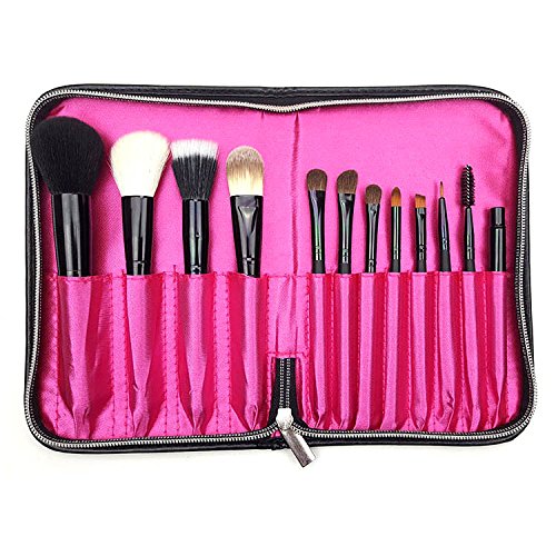 Amoroam Makeup Brushes Set for Face and Eye Blending Shading Contouring Highlighting 12 Pieces Eyeliner Eyeshadow Brow Concealer Foundation Blush Lip Brushes Powder Liquid Cream Brushes(Zippered Bag)