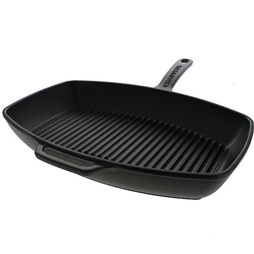 CHASSEUR 12-INCH BLACK RECTANGULAR FRENCH ENAMELED CAST IRON GRILL PAN