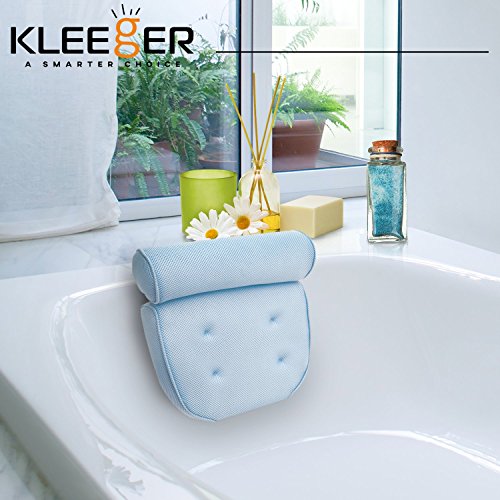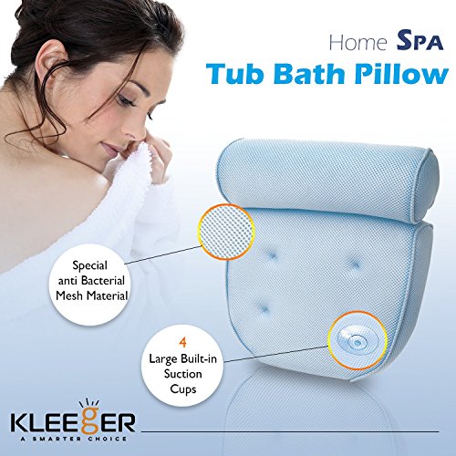 COMFORT AND RELAXATION IS THE PILLOWS PRIORITY: The Kleeger bath spa pillow is especially designed with comfort in mind. It is light, soft and supportive with a contoured shape that cradles your head, neck and back no matter what type of tub you have. We tried out many shapes and sized pillows before picking this one as the clear winner in every way. Extra large suction cups ensures this pillow stays where you put it!