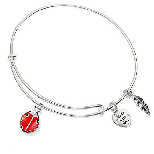 Enni of York Ladybird Charm Expandable Ani-Silver Bangle Bracelet