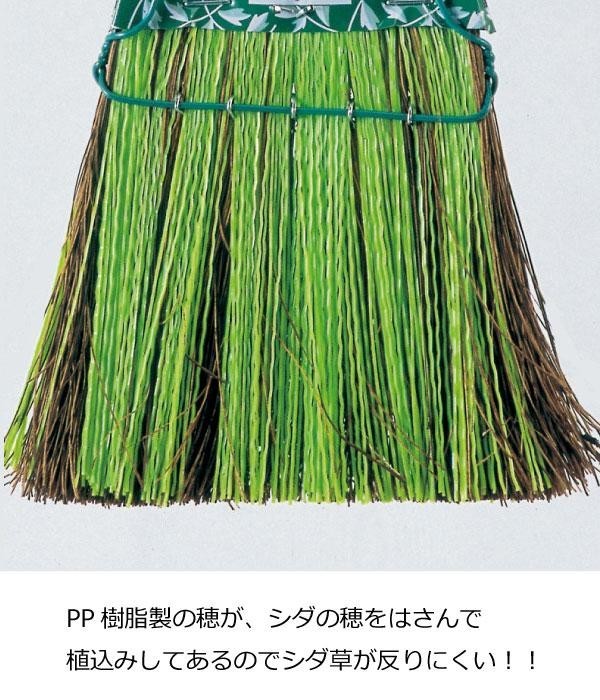 PP樹脂製の穂がシダの穂をはさんで植込みしてあるのでシダ草が反りにくく、乾いた状態でも濡れた状態でも変わらない掃き心地です。