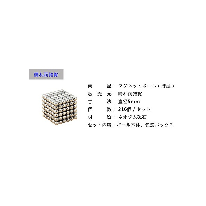 원본상품명: マグネットボ?ル 216個セット?5mm? マジック磁石 ?育工具 DIY工具 ネオジム磁石の立?パズル (球型)