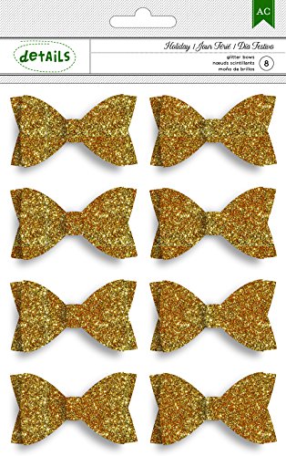 American Crafts 8 Piece Christmas Glitter Bows, Gold