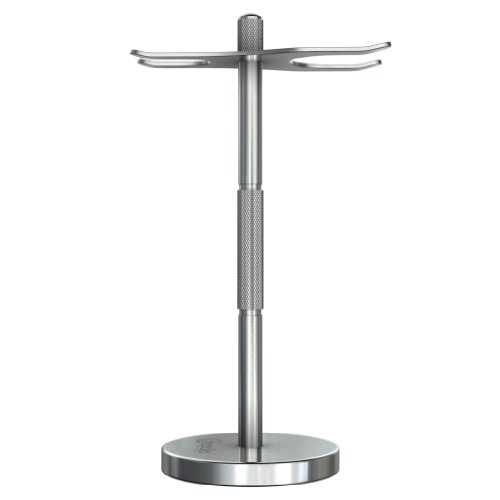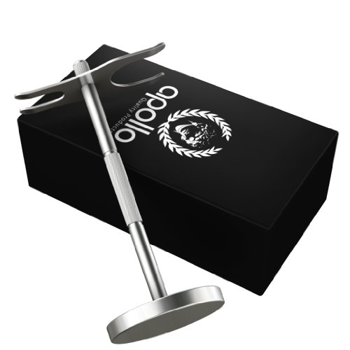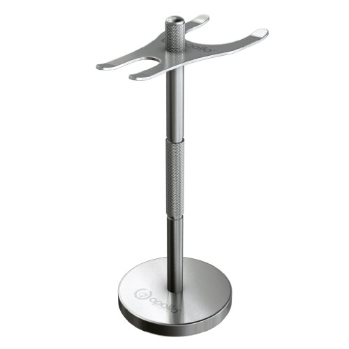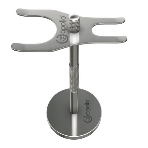 Leaving your razor and brush around on a counter or in a cabinet can be annoying, untidy, harmful to your shaving tools and even hazardous. Apollo offers a great remedy to all those troubles with a stylish stand which any vet shaver would be proud of.