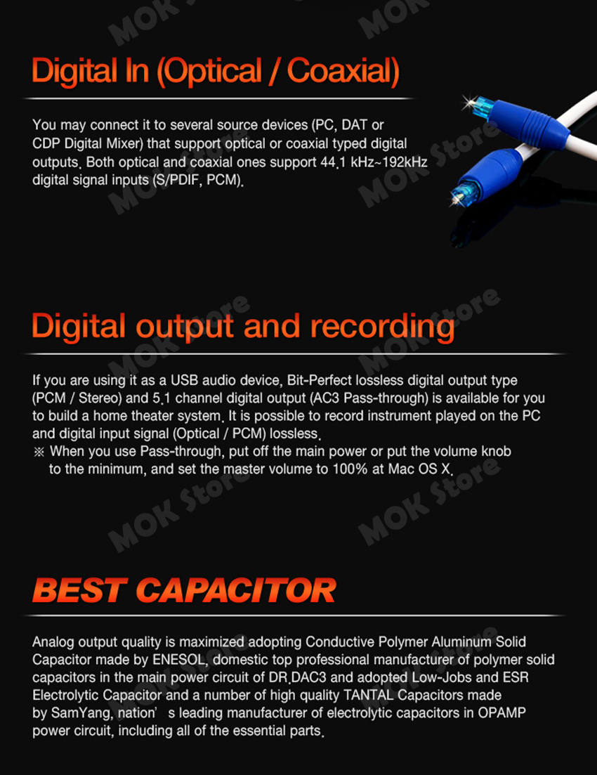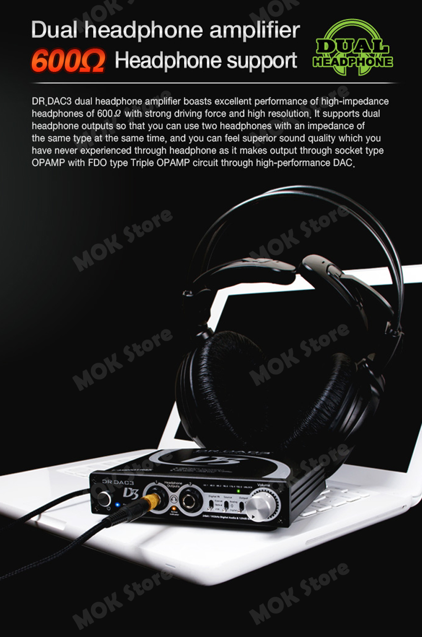 - DR.DAC3, which is a technically perfect integration of the top level DAC and powerful dual headphone amps as well as having USB audio features that can build a computer based HiFi audio system, provides the most advanced digital audio solutions. It adopts the highest VT1731 Envy USB Audio Controller by VIA Technologies, Inc., which supports USB 2.0 Hi-Speed (480 Mbps, asynchronous), to support 24bit / 192KHz in Optical/Coaxial Input as well as USB Input mode and also adopts PCM1794, TI’s highest DAC with a dynamic range reaching to 129 dB to hear high-quality sound source with rich resolution and HiFi sound quality.