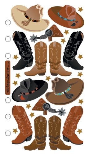 - Package contains Cowboy Hats & Boots: twenty-eight stickers on a 4x7 inch sheet