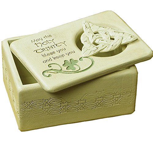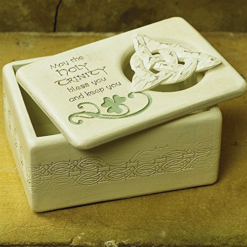 -. Feature : Measures 4.25" X 2" x 3" / Crafted of resin with white-washed detail / Featuring a classic trinity knot and hand-painted shamrock accent / Great gift for family, friends or that special someone
