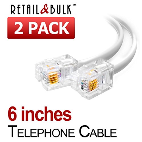 (2 Pack) 6 Inch Short Telephone Cable Rj11 Male to Male, 6p4c Phone Line Cord