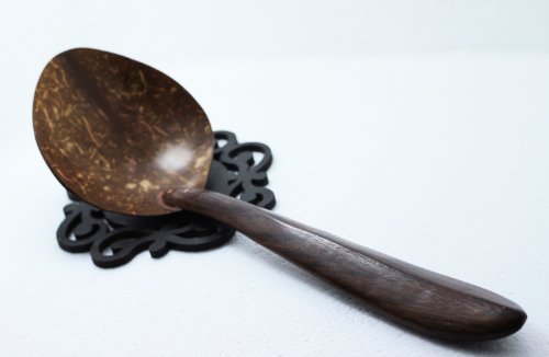 -. Feature : Made from coconut shell with holder wood.This size is Length 11 inches / The Carved Natural Wood - Unique Wooden Utensil and Kitchenware , Natural Color, No lacker, Eco friendly / Thaicraft kitchen design arts and crafts is unique and made in Thailand by our handicraftsman who work carefully. / Each Item may different from natural wood's colors and pattern / Each set include decorative mat as picture.