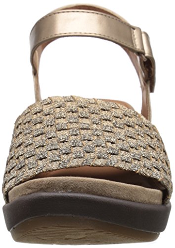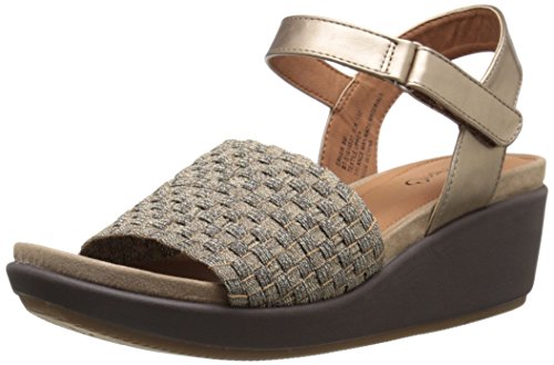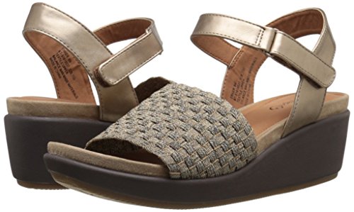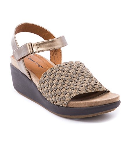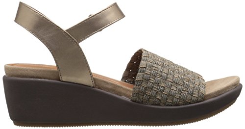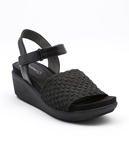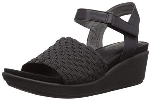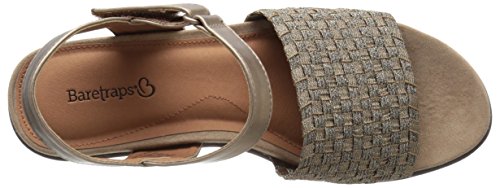 The baretraps erker is a fashion sandal on a wedge platform. Its woven stretch vamp is both comfortable and a perfect fit. The quarter strap is adjustable with a metal buckle. Its memory foam sock features responsive comfort and contouring cushion for all day support with every flexible step.
