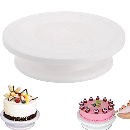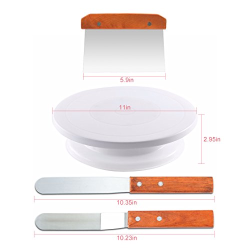 Yummy Sam Cake Stand is a great kitchen gadgets to have in the home for amateur or advanced bakers. The advantage of having a revolving cake stand is that it gives you easy access to all sides of the cake for frosting. There is a lubricating ring between the turntable and the base, which is easy to turn around. Rotating Cake Turntable - food grade materials, safe, non-toxic, odorless and frosted mesa of Non - slip platform, rotates clockwise and counterclockwise Angled Icing Spatula - wood handle, 430 premium stainless steel blade, durable and no rust. Straight Icing Spatula - perfect for icing desserts, frosting pastry, cookies, crepes, pies cupcakes, picking up and carrying cakes or pizzas, sandwiches, even cutting curds. Icing Smoother - multi-functional baking helper, mirror polishing with food grade stainless steel, wood handle for good grip, perfect for cutting dough, sectioning pie crusts, and more. Package Included 1 * Cake Turntable 1 * Angled Icing Spatula 1 * Straight Icing Spatula 1* Icing Smoother