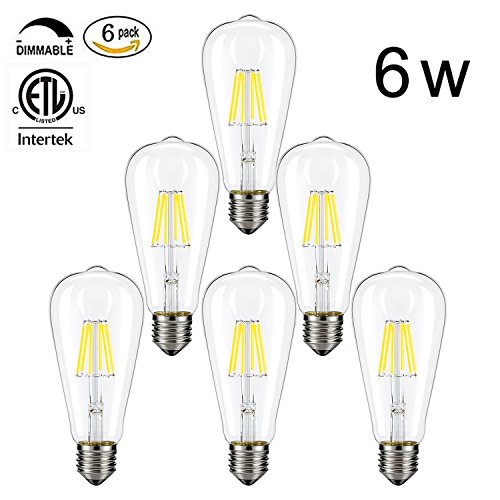 CMYK Vintage Edison LED Bulb, Dimmable 6W ST64 Antique LED Bulb Squirrel Cage Filament Light For Decorate Home, E26, 2200K, Warm White, Pack of 6