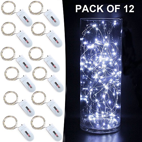 SEEOU 12 PCS White Fairy Lights LED String Lights Battery Powered, 20 Micro LEDs on 3.3ft/1m Silvery Copper Wire, Battery Operated String Lights by 2xCR2032, for Christmas Decorations Holiday Wedding