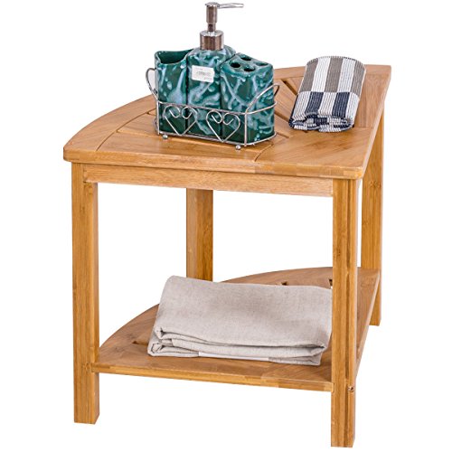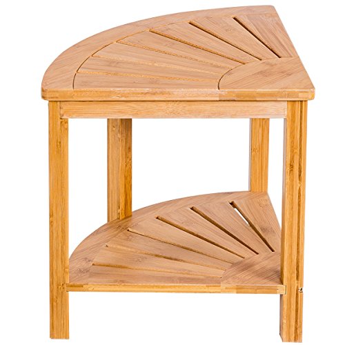 Studio : Giantex Publisher : Giantex Product Description Description This is our Giantex corner shower bench which has storage shelves. It has multifunction and can work as a stool as well as an organizer. Its delicate design with fan shape looks modern and attractive. Besides, the fan shape also enables the stool to be more stable. Our 100% Moso bamboo material makes this shower bench natural and durable. This corner bench is light so it is easy and convenient for anyone to take or put it at any corner of your bathroom, living room or balcony. Don't hesitate to buy it!