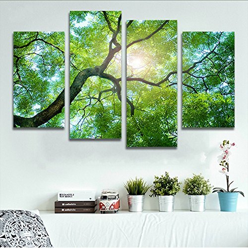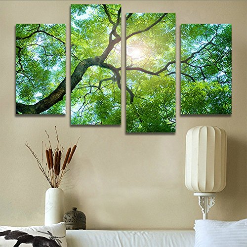 -. Title : H.COZY 4 Panels Green Tree Painting Canvas Wall Art Picture Home Decoration Living Room Canvas P.R.Int Modern Painting (No Frame) Unframed FCR36 48 inch x28 inch