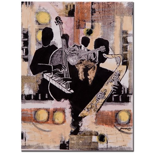 This ready to hang, gallery wrapped art piece features a band playing. Garner Lewis started drawing at the age of 10. Her father recognized her natural ability to draw and always encouraged her to create. She is a self-taught artists and originally from Columbus, Ohio. Garner uses a variety of media in creating her work. She is mostly known for her mixed media collage creations. Her art is primarily made of the paper that she makes found objects, acrylic paint and fabrics. She is also known for her hand crafted one-of-a-kind art plates and African masks. When creating her masks, Garner uses authentic mud cloths from parts of Africa. Giclee (jee-clay) is an advanced printmaking process for creating high quality fine art reproductions. The attainable excellence that Giclee printmaking affords makes the reproduction virtually indistinguishable from the original piece. The result is wide acceptance of Giclee by galleries, museums, and private collectors. Gallery wrap is a method of stretching an artist's canvas so that the canvas wraps around the sides and is secured a hidden, wooden frame. This method of stretching and preparing a canvas allows for a frameless presentation of the finished painting.Feature