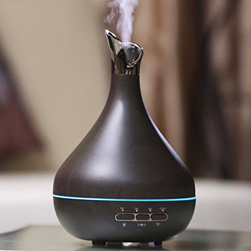 LuxLumi Paradise Peak Oil Ultrasonic Diffuser Aroma Essential Oils & Humidifier with Multi Color LED Night Light Motion Sensor Timer Large Bedroom Living Room Dorm Office Desk Home (Dark Wood Grain)