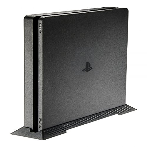 -. Feature : Make your PS4 Slim a new fresh look with the Vertical Stand. / It is very sturdy and durable. Besides, it uses a locking mechanism combined with two rubber-padded pegs to hold the PS4 Slim steady. / It has event ventilation at the bottom to keep the heat moving out. / Very simple to attach with NO sticky tape, screws or tools needed. / Note: works only with the PS4 Slim console.