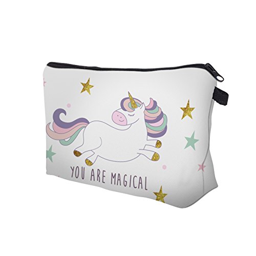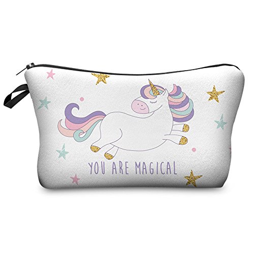 ZAONE Women Makeup Bags 3D Printing Zipper Cosmetic Bag With Multicolor Pattern Cute Unicorn Collection Cosmetics Pouchs For Travel Ladies Women Eyebrow Pencil Case Organiser (White 1)