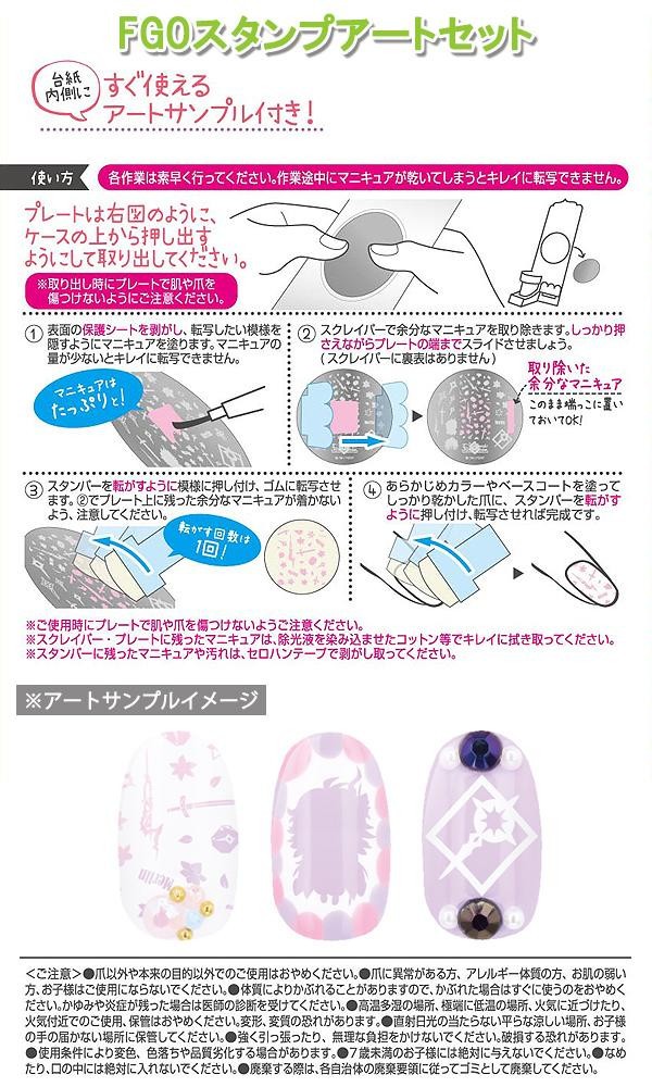 | 製造地 | FGOマニキュア:台湾、ホログラム・FGOスタンプアートセット:中国 |