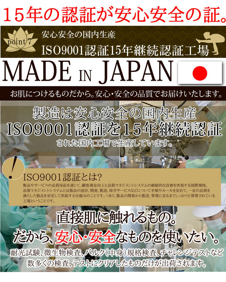 ●お肌に合わないときや、使用後に赤み・腫れ・刺激・かゆみ・色抜け(白斑など)・黒ずみなどの症状が現れた時には、使用を中止して皮膚科専門医へご相談下さい。