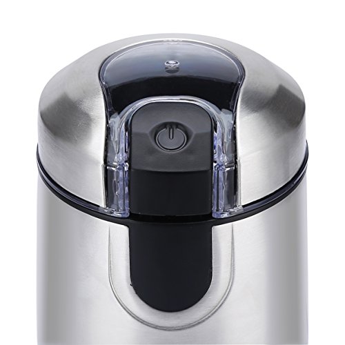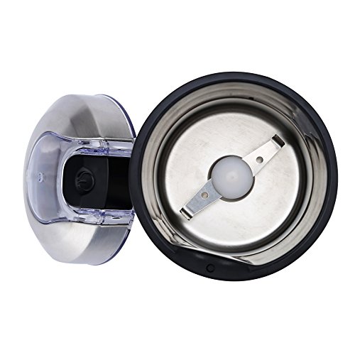 Easy to Operate without hesitation It's very simple to use and allow you control the fineness of your coffee ground. You just need to put the beans in, place the cover in position and press the One-Touch control to begin grinding and release to stop. The transparent part of lid enables you to monitor the grinding performance during operation. Besides, the regular circle shape and non-slip bottom designs ensure uniform grinding. It is a versatile grinder for every family and we suggest not put wet, oily or hard food in, for the blades and container life time could be affected. Easy to clean by wiping the surface and container with a damp soft cloth and then keep dry.