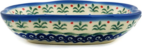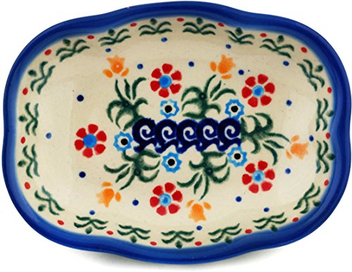 -. Feature : Hand made and hand painted in the heart of Europe in the town of Boleslawiec in Poland / Lead and cadmium free. Safe to use in: microwave, dishwasher, oven up to 480 F, freezer / Hand crafted from natural white clay by highly skilled artisans, highly collectable / Fired twice, extra durable, crack and chip resistant, intended for everyday use, easy to clean / Long lasting, colors will never fade. Dimensions: 4" wide, 5¼" long, 1¼" high.