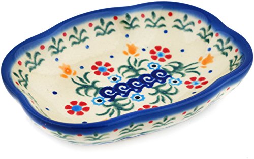 -. Title : Polish Pottery Soap Dish 5-inch SP.R.Ing Flowers