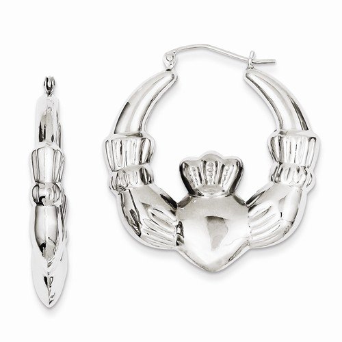 925 Sterling Silver Claddagh Hoop Earrings (35mm x 34mm)