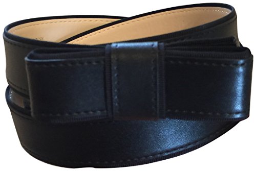 -. Title : Genuine Leather Goldtone Buckle Bow Belt Black